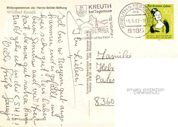 72621385 alte Postkarte Wildbad Kreuth Bildungszentrum der Hanns-Seide-Stiftung postalisch gelaufen Erhaltung siehe scans [LiesaD40] KatCode: 11110009182124