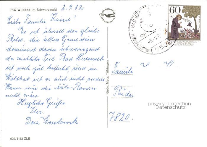 72329130 alte Postkarte Wildbad Schwarzwald postalisch gelaufen Erhaltung siehe scans KatCode: 11110008235079