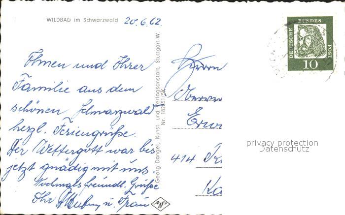 72202553 alte Postkarte Wildbad Schwarzwald postalisch gelaufen Erhaltung siehe scans KatCode: 11110008235079