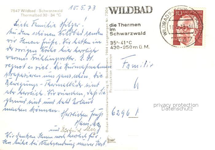 73196683 alte Postkarte Wildbad Schwarzwald postalisch gelaufen Erhaltung siehe scans [NatalD47] KatCode: 11110008235079