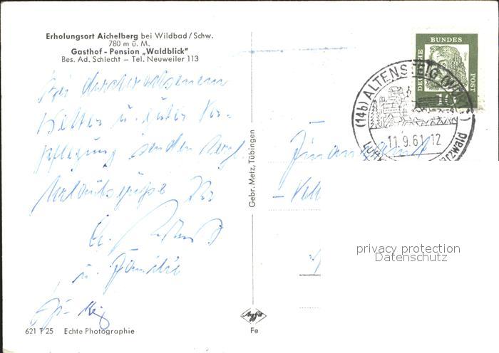 32040864 alte Postkarte Wildbad Schwarzwald Aichelberg Gasthof Pension Waldblick postalisch gelaufen Erhaltung siehe scans KatCode: 11110008235079