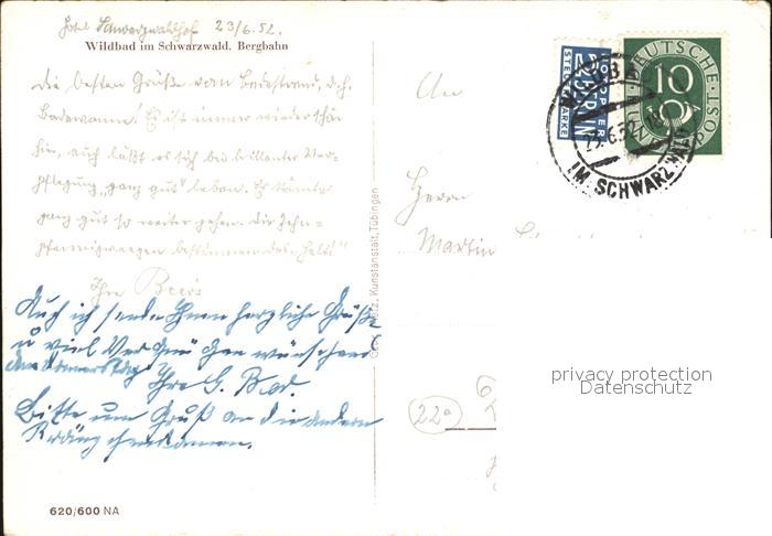 72430497 alte Postkarte Wildbad Schwarzwald Bergbahn postalisch gelaufen Erhaltung siehe scans KatCode: 11110008235079