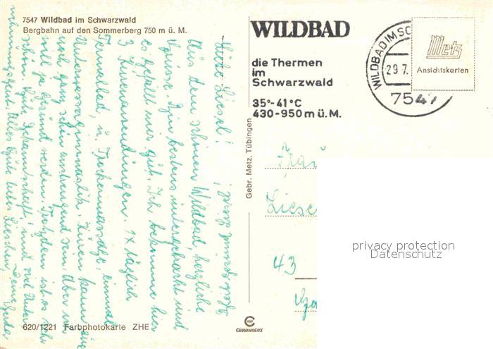 72856351 alte Postkarte Wildbad Schwarzwald Bergbahn auf den Sommerberg postalisch gelaufen Erhaltung siehe scans [WerneD78] KatCode: 11110008235079