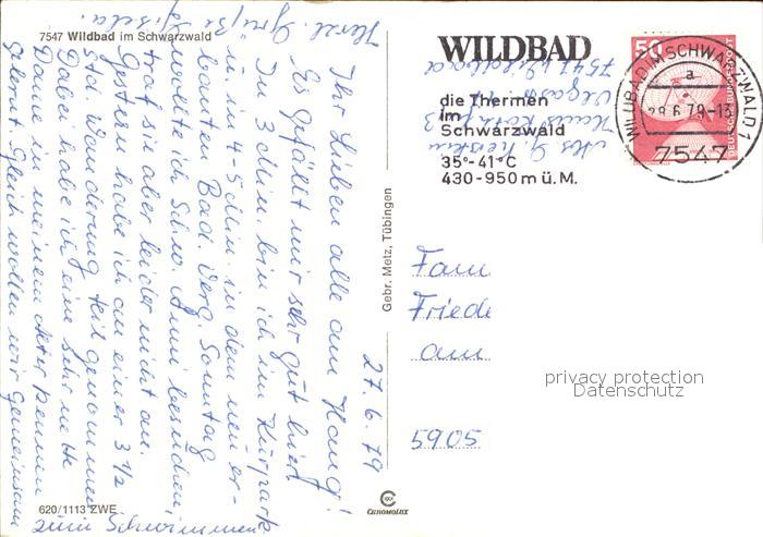 72505942 alte Postkarte Wildbad Schwarzwald Bergbahn Schwimmbad postalisch gelaufen Erhaltung siehe scans KatCode: 11110008235079