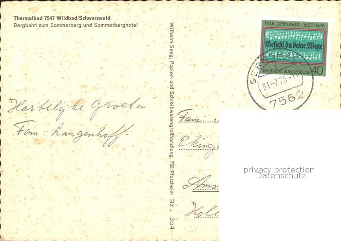 72324987 alte Postkarte Wildbad Schwarzwald Bergbahn Sommerberg Sommerberghotel postalisch gelaufen Erhaltung siehe scans KatCode: 11110008235079