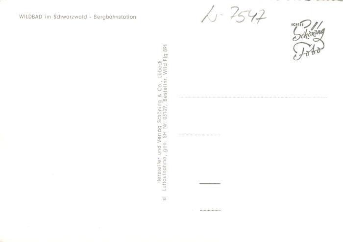 73872037 Wildbad Schwarzwald Bergbahnstation Fliegeraufnahme postalisch nicht gelaufen Erhaltung siehe scans [WerneD78] KatCode: 11110008235079