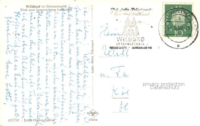 73762094 alte Postkarte Wildbad Schwarzwald Blick vom Sommerberg ins Enztal postalisch gelaufen Erhaltung siehe scans [WerneD78] KatCode: 11110008235079