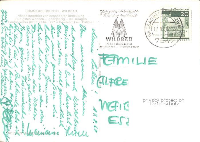 72235174 alte Postkarte Wildbad Schwarzwald Blick von Terrasse postalisch gelaufen Erhaltung siehe scans KatCode: 11110008235079