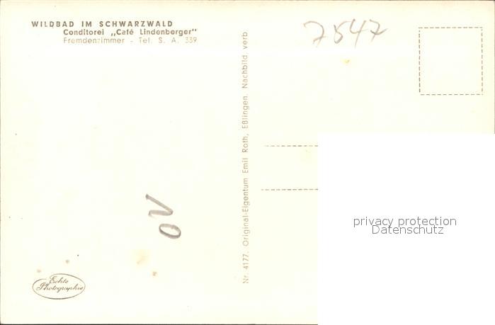 41584926 Wildbad Schwarzwald Cafe Lindenberger Conditorei KatCode 11110008235079