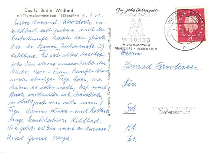 72938973 alte Postkarte Wildbad Schwarzwald Das U Bad mit Thermalschwimmbad postalisch gelaufen Erhaltung siehe scans [FriedD77] KatCode: 11110008235079
