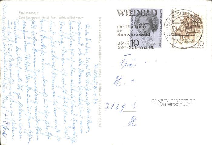 72114836 alte Postkarte Wildbad Schwarzwald Enzterrasse Cafe Restaurant Hotel postalisch gelaufen Erhaltung siehe scans KatCode: 11110008235079