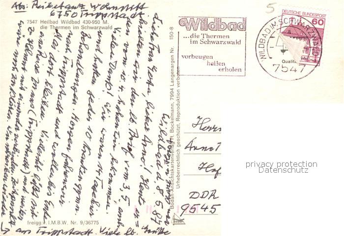 73125915 alte Postkarte Wildbad Schwarzwald Fliegeraufnahme postalisch gelaufen Erhaltung siehe scans [NatalD47] KatCode: 11110008235079