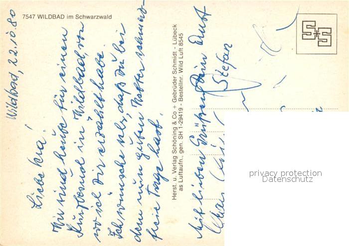 73104732 Wildbad Schwarzwald Fliegeraufnahme postalisch nicht gelaufen Erhaltung siehe scans [WerneD78] KatCode: 11110008235079