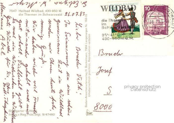 73079291 alte Postkarte Wildbad Schwarzwald Fliegeraufnahme postalisch gelaufen Erhaltung siehe scans [KathaD81] KatCode: 11110008235079