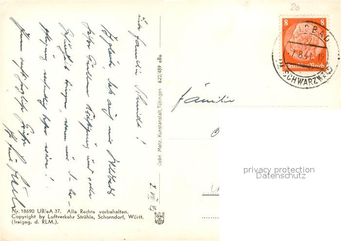 73039386 alte Postkarte Wildbad Schwarzwald Fliegeraufnahme postalisch gelaufen Erhaltung siehe scans [KathaD81] KatCode: 11110008235079
