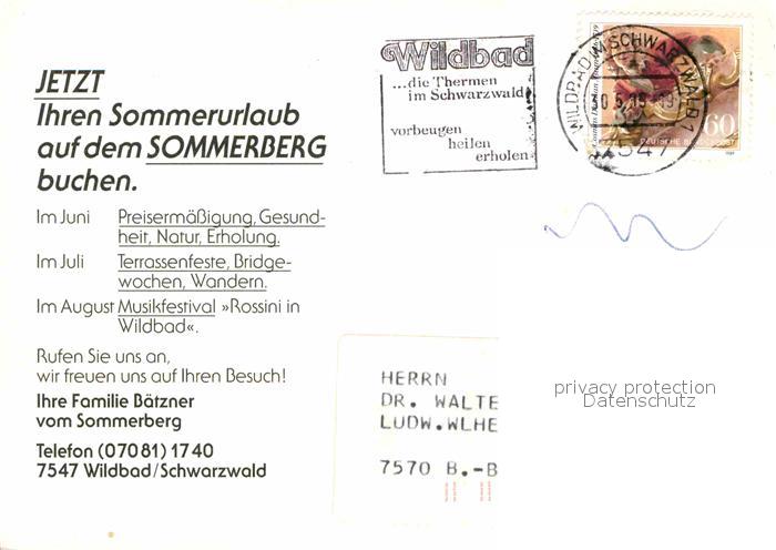 72838378 alte Postkarte Wildbad Schwarzwald Fliegeraufnahme postalisch gelaufen Erhaltung siehe scans [WerneD78] KatCode: 11110008235079