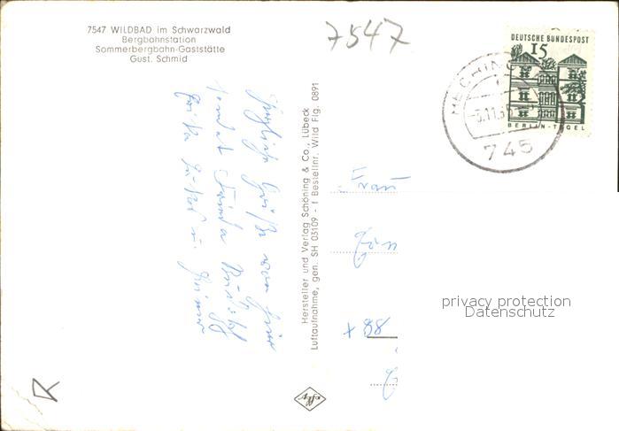 41584802 Wildbad Schwarzwald Fliegeraufnahme Bergbahnstation Restaurant KatCode 11110008235079