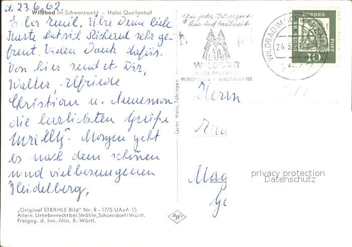 72174995 alte Postkarte Wildbad Schwarzwald Fliegeraufnahme Hotel Quellenhof postalisch gelaufen Erhaltung siehe scans KatCode: 11110008235079