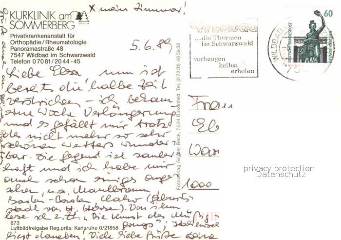 72673020 Wildbad Schwarzwald Fliegeraufnahme Kurklinik Sommeberg postalisch nicht gelaufen Erhaltung siehe scans [AndreD76] Andr Katcode 11110008235079