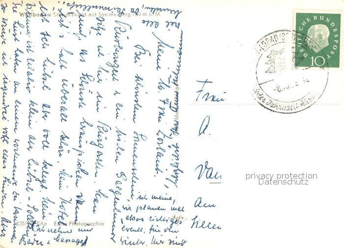73648307 alte Postkarte Wildbad Schwarzwald Fliegeraufnahme mit Sommerberg postalisch gelaufen Erhaltung siehe scans [WerneD78] KatCode: 11110008235079