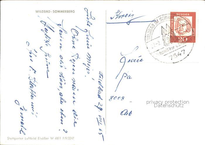 72304594 alte Postkarte Wildbad Schwarzwald Fliegeraufnahme Somemrberg postalisch gelaufen Erhaltung siehe scans KatCode: 11110008235079
