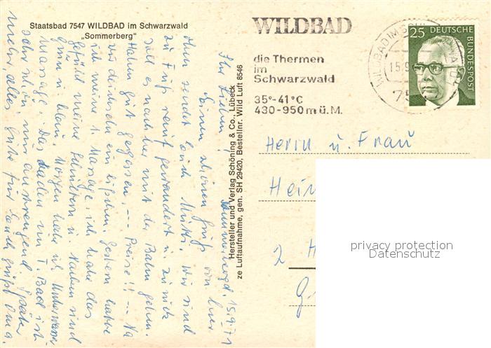 73168168 alte Postkarte Wildbad Schwarzwald Fliegeraufnahme Sommerberg postalisch gelaufen Erhaltung siehe scans [KathaD81] KatCode: 11110008235079