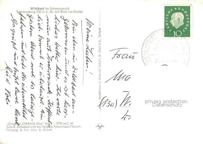 73294840 alte Postkarte Wildbad Schwarzwald Fliegeraufnahme Sommerberg Enztal postalisch gelaufen Erhaltung siehe scans [NatalD47] KatCode: 11110008235079