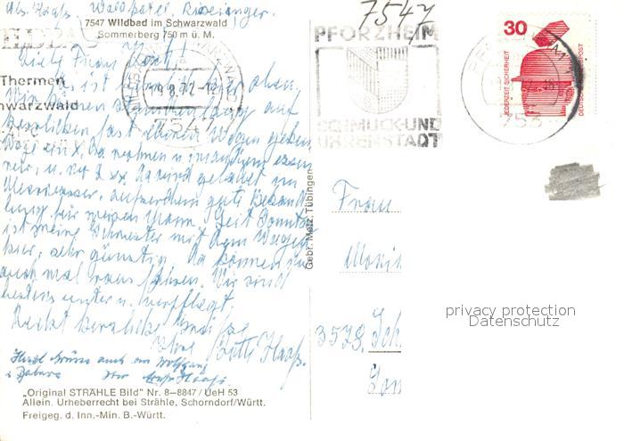 73281555 alte Postkarte Wildbad Schwarzwald Fliegeraufnahme Sommerberg postalisch gelaufen Erhaltung siehe scans [NatalD47] KatCode: 11110008235079