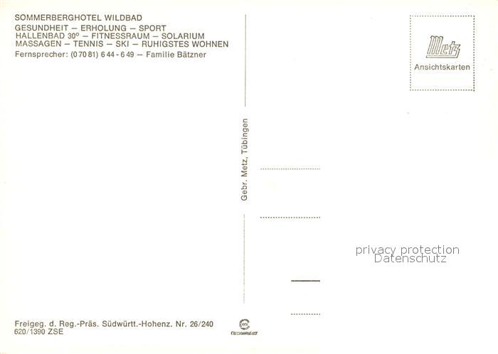 73055845 Wildbad Schwarzwald Fliegeraufnahme Sommerberghotel Wildbad postalisch nicht gelaufen Erhaltung siehe scans [WerneD78] KatCode: 11110008235079