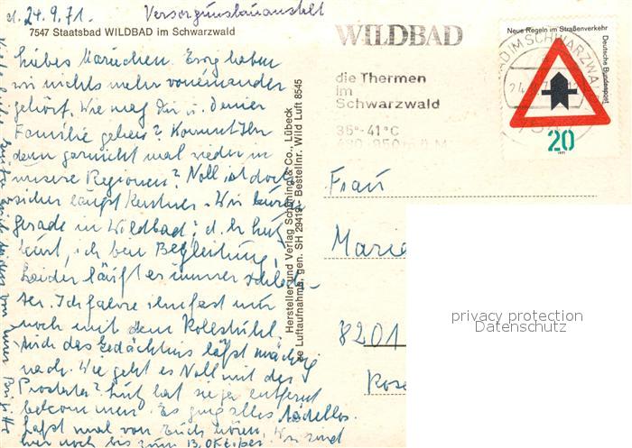 73174514 alte Postkarte Wildbad Schwarzwald Fliegeraufnahme Staatsbad postalisch gelaufen Erhaltung siehe scans [LiesaD40] KatCode: 11110008235079