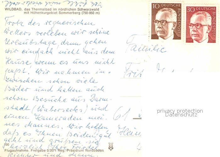 72752602 Wildbad Schwarzwald Fliegeraufnahme Thermalbad mit Sommerberg postalisch nicht gelaufen Erhaltung siehe scans [LiesaD40] KatCode: 11110008235079