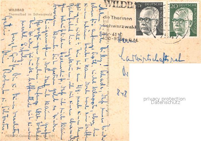 73122413 alte Postkarte Wildbad Schwarzwald Fliegeraufnahme Thermalbad postalisch gelaufen Erhaltung siehe scans [LiesaD40] KatCode: 11110008235079