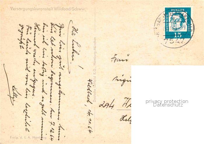 72913980 alte Postkarte Wildbad Schwarzwald Fliegeraufnahme Versorgungskuranstalt postalisch gelaufen Erhaltung siehe scans [KathaD81] KatCode: 11110008235079