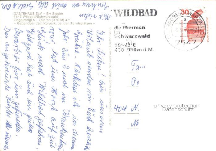 71859452 alte Postkarte Wildbad Schwarzwald Gaestehaus ELV postalisch gelaufen Erhaltung siehe scans KatCode: 11110008235079