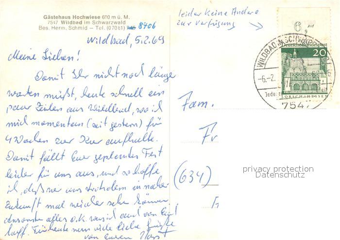 73667439 alte Postkarte Wildbad Schwarzwald Gaestehaus Hochwiese postalisch gelaufen Erhaltung siehe scans [WerneD78] KatCode: 11110008235079