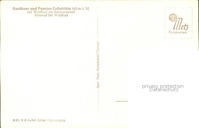 71944035 Wildbad Schwarzwald Gasthaus Pension Gruenhuette postalisch nicht gelaufen Erhaltung siehe scans KatCode: 11110008235079