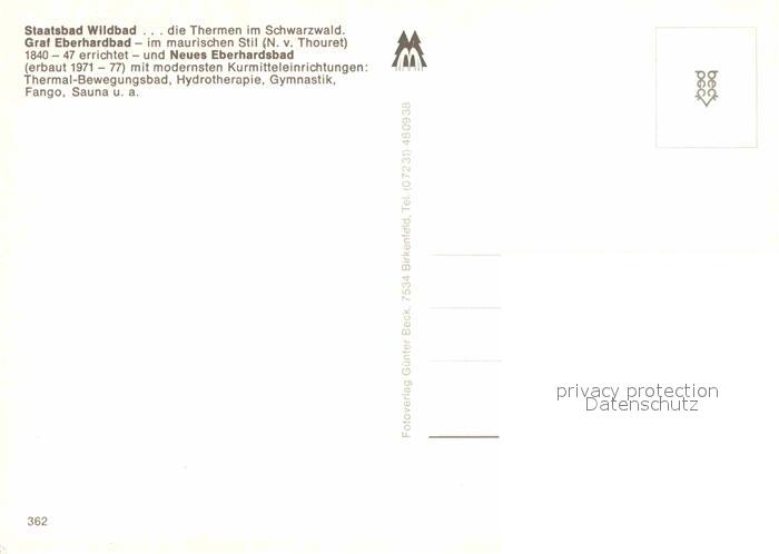 72663755 Wildbad Schwarzwald Graf Eberhardbad Thermalbad postalisch nicht gelaufen Erhaltung siehe scans [FriedD77] KatCode: 11110008235079