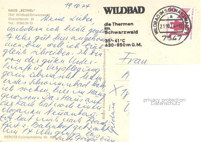 73775986 alte Postkarte Wildbad Schwarzwald Haus Bethel postalisch gelaufen Erhaltung siehe scans [WerneD78] KatCode: 11110008235079