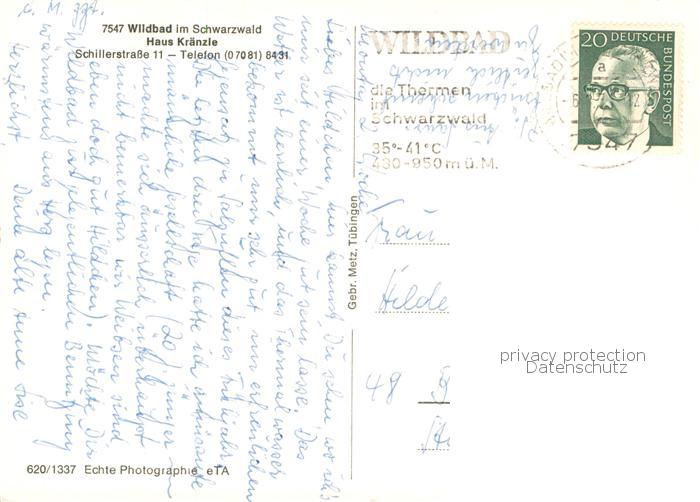 73764436 alte Postkarte Wildbad Schwarzwald Haus Kraenzle postalisch gelaufen Erhaltung siehe scans [FriedD77] KatCode: 11110008235079