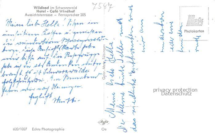 74042854 WILDBAD Schwarzwald Hotel Cafe Windhof postalisch nicht gelaufen Erhaltung siehe scans [WerneD78] KatCode: 11110008235079