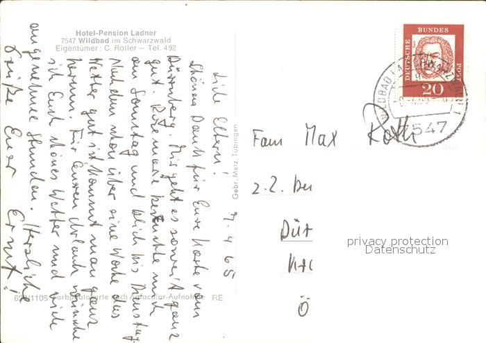 71829276 alte Postkarte Wildbad Schwarzwald Hotel Pension Ladner postalisch gelaufen Erhaltung siehe scans KatCode: 11110008235079