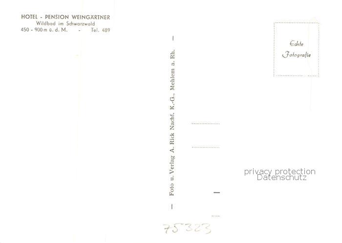 73785771 Wildbad Schwarzwald Hotel Pension Weingaertner postalisch nicht gelaufen Erhaltung siehe scans [WerneD78] KatCode: 11110008235079