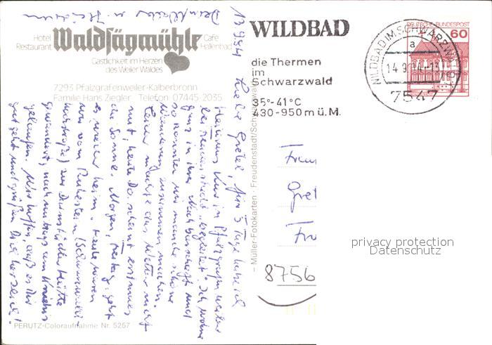 71926658 alte Postkarte Wildbad Schwarzwald Hotel Restaurant Waldsaegmuehle postalisch gelaufen Erhaltung siehe scans KatCode: 11110008235079