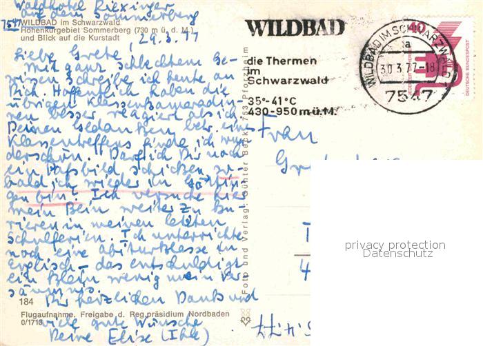 72777406 alte Postkarte Wildbad Schwarzwald Kurgebiet Panorama postalisch gelaufen Erhaltung siehe scans [KathaD81] KatCode: 11110008235079