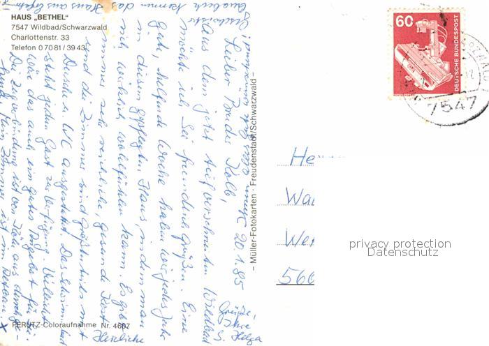 72743732 alte Postkarte Wildbad Schwarzwald Kurheim Haus Bethel Hallenbad postalisch gelaufen Erhaltung siehe scans [FriedD77] KatCode: 11110008235079