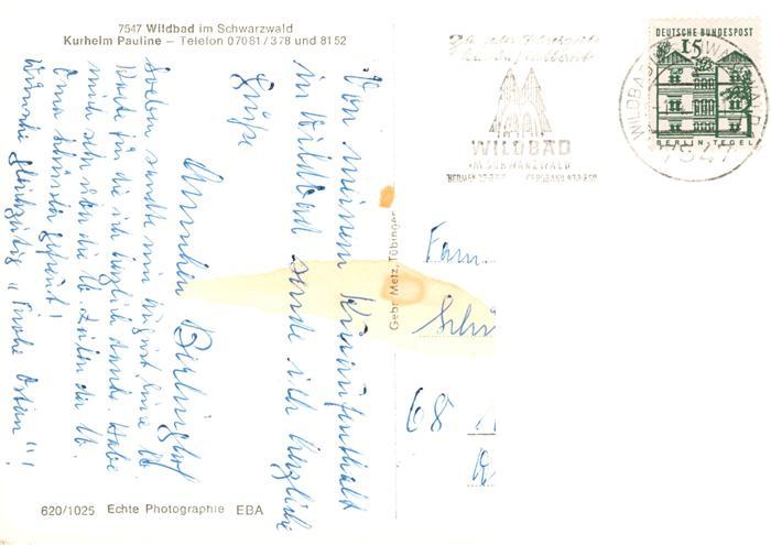73924660 alte Postkarte Wildbad Schwarzwald Kurheim Pauline postalisch gelaufen Erhaltung siehe scans [FriedD77] KatCode: 11110008235079