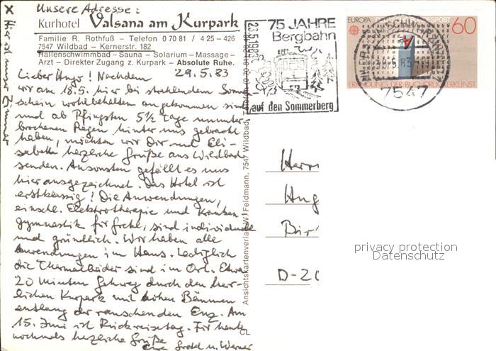 72035457 alte Postkarte Wildbad Schwarzwald Kurhotel Valsana am Kurpark Foyer Hallenbad postalisch gelaufen Erhaltung siehe scans KatCode: 11110008235079