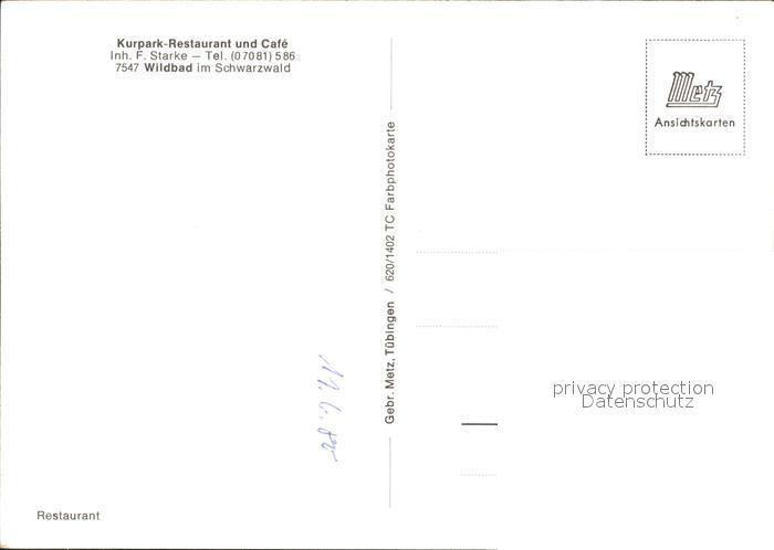 72323916 Wildbad Schwarzwald Kurpark Restaurant Cafe postalisch nicht gelaufen Erhaltung siehe scans KatCode: 11110008235079