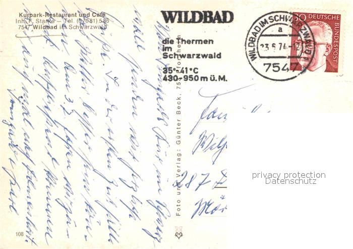 72778980 alte Postkarte Wildbad Schwarzwald Kurpark Restaurant und Cafe postalisch gelaufen Erhaltung siehe scans [FriedD77] KatCode: 11110008235079