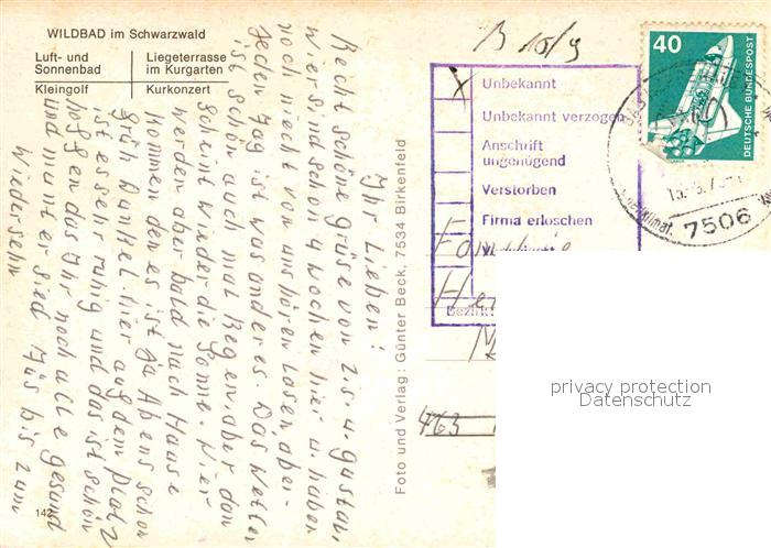 72743242 alte Postkarte Wildbad Schwarzwald Kurparkanlagen Kleingolf Kurkonzert postalisch gelaufen Erhaltung siehe scans [FriedD77] KatCode: 11110008235079